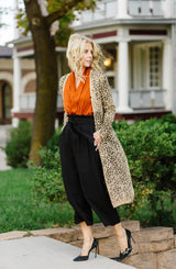 Cardigan...check, leopard...check, the hottest trend of the season...double check! Kidding aside, you will absolutely fall in love with the Rue Leopard cardigan. The distressed fabrication makes it look perfectly broken-in, while still looking chic. Unlike many leopard cardigans, this one is not bulky and is the perfect layering piece. The sleeves have a 3" knit ribbed detail, allowing you to push up your sleeves or keep them down. We also love the button details on this cardigan, which can provide multiple styling options. For the office, we like this cardigan paired with a black structured blouse and wide-leg trousers. For the weekend, pair with a skirt, denim shirt dress or your favorite skinny jeans. This is sure to sell out fast so....get yours before someone else does. **FINAL SALE**