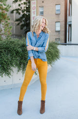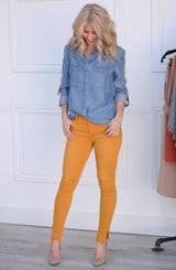 Let's take a moment to appreciate the fabulous hem detail on these amazingly comfortable Joyrich Comfort Skinny jeans. The raw hem and step detail adds pizazz, while the actual fabrication and stretch make these jeans the most comfortable pair of denim you will wear all season. We love the great honey gold color, as it is a great fall to spring color.