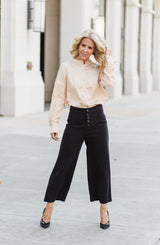 A mix of classic styling and trend! Crafted from luxe Satin, the Kat Button Down by Lysse has amazing style, such as an over-sized tunic look with dropped shoulders and roll-up tab sleeves. The length is perfect for wearing untucked or as a tunic, effortlessly concealing your assets. This top is perfection over leggings and skinnies or tucked into your favorite pencil skirt or trousers! Do not forget to layer this top with the Ellery Cape for a uber chic look. **FINAL SALE**