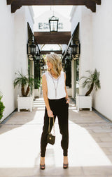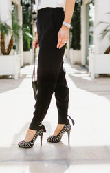 Picture walking into a room wearing these trousers! It’s as if comfy joggers and dress pants had a baby! Seriously, elevate your WFH look with these beauties. The buckle details allows you to wear them straight legged or cinched at the ankle to give you that edgy joggers look. Paired with our Mesh Tank, Razer Black Moto, a killer pair of heels, these trousers are anything but ordinary. **FINAL SALE**