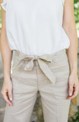 Nothing screams spring and summer than a great linen pant and the Natasha Tie Belt by Level 99 does not disappoint. Classic design will make these pants a wardrobe essential. The tie belt adds a cute detail but can easily be removed if you want to wear a different belt. Front pockets are sleek, yet have a fun stitching detail. Square pockets in the rear and simple wide leg design round out the fun features of this pant. We love the Natasha paired with a simple white shirt and heels for the office. For the weekend, a simple tee or tank, sandals, cross-body bag, and hat will turn these office essentials into a weekend staple.