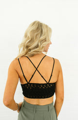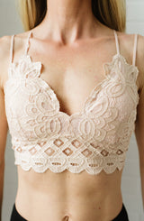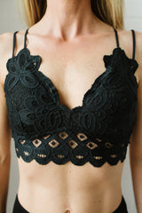 This double strap, padded, lace bralette is an essential addition to your closet. Perfect for wearing under your favorite tank, blouse, or sweater to add a sexy lace detail. Available in three colors, it is a great, versatile piece with endless pairing options.