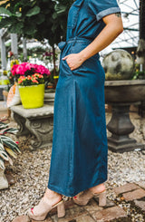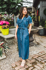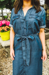 A perfect wardrobe staple, the Jem denim tencel shirt dress is perfect for any occasion. With classic rolled sleeves, full-button closure, front pocket details, and tie waist, this dress can be worn to the office and easily transition to the weekend. The jem is simply a dress that is classic, is flattering on all body types, and will leave you feeling polished and confident. **FINAL SALE**