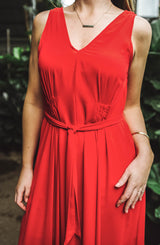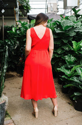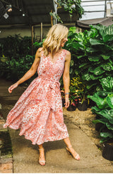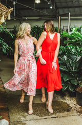 Stop them in their tracks with this double v-neck belted dress. An ultra classy and chic look, this dress is perfect for the office or a wedding. The dress is simple and understated, yet there are small details that you cannot miss. Pleated details under the bust line create a slimming effect for the waistline. The wide tie belt can be tied on the side, right in front, in a knot, or a bow, you decide. With a flowy skirt that is a midi length, this dress is universally flattering. We love this dress paired with a simple necklace and heels. But for an edgier look, pair it with our Rio moto and booties. **FINAL SALE**