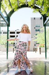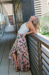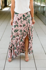 Take a trip to the tropics without having to actually leave the country by slipping on this fabulous Haole Wrap Maxi Skirt by JACK by BB Dakota. The tropical floral print coupled with the gorgeous pink color will not only turn heads, but the compliments will certainly roll in. We love the faux wrap design and ruffle details on the hemline. The high-low silhouette gives this skirt a bit of sex appeal without being too over the top. We love this skirt paired with a fun off the shoulder blouse for a more conservative look, but for date night, we love the Haole Wrap Maxi Skirt paired with our spaghetti strap bodysuit. Such an easy, breezy look that you'll want to wear day in and day out. **FINAL SALE**
