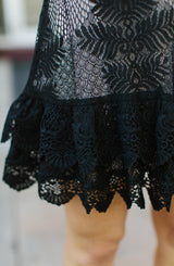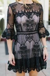 You can never have too many LBD's in your closet and this is a gorgeous one to have queued up, ready to go. The Layer Cake Lace Ruffle Dress by BB Dakota is an ornate scalloped lace cocktail dress with sheer sleeves and a tiered skirt hem. Perfect for a wedding, cocktail party or even those upcoming holiday parties, lace and black never go out of fashion. The details are endless with this dress. With 3/4 length sleeves that end with a fun ruffle detail, fitted bodice that hugs all the right places, to the A-line skirt with dual ruffle detail on the hemline, this dress will be on your repeat list all season long.