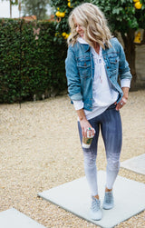 The Graphic High Rise Midi is designed with unique prints and patterns. Featuring a slimming high waistband that covers the hip area and lands just below the belly button. They are designed to be a second skin that will stretch and move with your body. Perfect for yoga, running, or your sweat session in the gym, the graphic high rise will keep you dry, secure, and in style. These leggings also add details to your athleisure outfit. Pair these leggings with our Hooded Mesh Sweat Shirt and Amelia Denim jacket for a polished athleisure look.