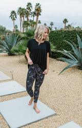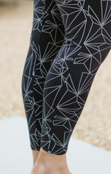 One word "Reflective". You are sure to be seen in these amazing leggings. The geometric pattern is fun yet functional and perfect for those who run at night. The High Rise Midi features a slimming high waistband that covers the hip area and lands just below the belly button. They are designed to be form-fitted and will stretch and move with your body. The midi length is a tad longer than the normal capri, but still shows a little leg.