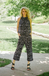 Looks like a two piece doesn't it? Don't let this outfit fool you...it's a single jumpsuit. The Skyler Cropped Jumpsuit is the perfect office to world traveler outfit. With a halter tie-neck, blouse pop-over, side pockets, wide cropped leg, and ultra comfortable fit, the Skyler Jumpsuit is a no-brainer. The fabric is refreshingly lightweight, yet so smoothing and flattering. Bonus...it's machine washable and is both wrinkle-free and worry-free, so you always look polished and put-together, no matter what your day brings. **FINAL SALE**
