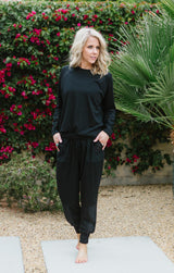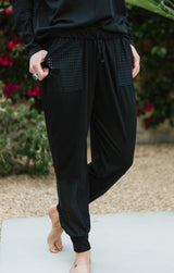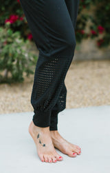 These oh so lightweight, comfy joggers by Onzie will keep you warm on those chilly spring days. Featuring mesh panels for breathability and style, along with elastic waist band, cuffed ankles, and mesh side pockets. The joggers are made from a jersey spandex blend that is super soft, comfy, and stylish! Slip these on after an intense yoga session or anytime for a perfect athleisure look.