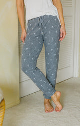 The perfect mate for the Peachy Party long sleeve, the Peachy Party pant is a loungewear essential. Available in blush with smoke star detail or in smoke with fun martini glass detail. Soon to be your new favorite bottoms for lounging around!