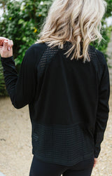 Workout complete? Throw on this oh so comfy and cozy Pullover that will keep you warm on chilly nights. Features mesh panels for breath-ability and style as well as thumb holes in the sleeves. Made from a jersey spandex blend that is super soft and comfy!