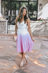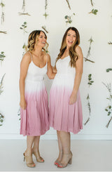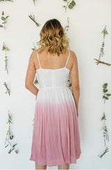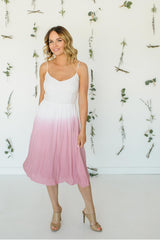 This dress is one bad "ombre"...see what we did there? All puns aside, this dress is a MUST have for spring and summer. The design is classic and simple with thin adjustable straps and slight v-neckline. But what makes this dress special is the ombre skirt, transitioning from white into a beautiful pink blossom. Simple and chic rolled into one. This dress can be dressed up for a spring or summer wedding or throw on a denim jacket and flat sandals for a cute date night outfit. This is a perfect dress for any occasion, wedding, college graduation, date night, or a night out on the town.
