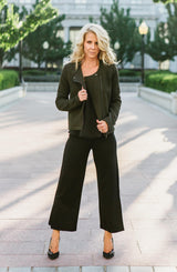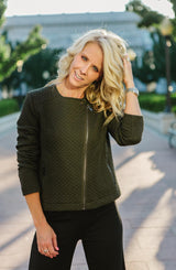 If you love the moto jacket trend and love the comfort of your loungewear, then this is the jacket for you! The Devoe Quilted Jacket offers an amazingly comfy quilted fabric with moto jacket-like detailing from the angled zipper front closure and pockets, to the tailored darts in front and back. Not only are the details great, but it is the perfect weight for those cool nights. Don't get us wrong though, this jacket is not only for lounging around, pair it with some of your favorite casual looks to give them that extra touch!