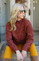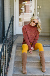 A bold variegated knit that is slightly over-sized and so on trend this season. We cannot get enough of this comfort of this sweater. The mockneck detail, and variegated yarn, make this the most versatile sweater. This sweater has a wide, off-set shoulder seam to give detail and comfort. The hemline is straight with a great side slit detail. Wear tucked in, partial tuck, or out, however you wear it, you will get compliments on the color. For a polished casual look, with the Dear John Joyrich Comfort Skinny in mustard or the KUT Mia Fab Ab Skinny Jeans. You can also pair this with a pencil skirt or trousers for the office. Regardless of how you pair it, this sweater will be your go-to all season long.