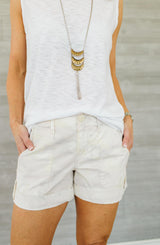 The Explorer Patch Pocket Short is a classic style and staple for the spring and summer season. The Explorer short is cut with a relaxed fit, that flatters any shape. With utility style patch pockets, roll tab button hem, side utility pocket, and back flap pockets, this short is the perfect addition to your wardrobe for those those warm spring and summer days. We love this short styled with blouses and heeled sandals for a more polished casual look or pair it with our simple muscle tank with a partial tuck and sneakers for the weekend.