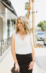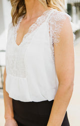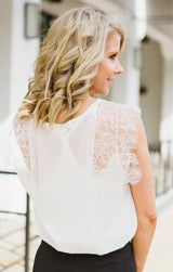 Where femininity meets style, this chiffon lace top is sure to turn heads. The delicate lace details on the shoulder and on the bodice make this top a show stopper. But don't be afraid to wear this top with jeans, as it is one of those tops that can be worn with a gorgeous pencil skirt and blazer for the office but also worn with your favorite skinny jeans. Dress up or dress down, you choose but we know you'll love this top.