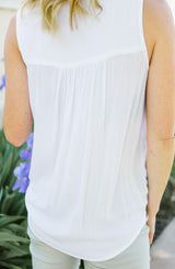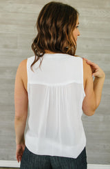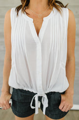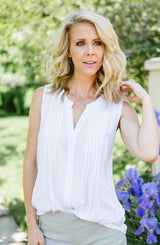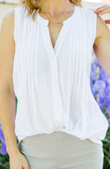We are crushing on this great basic by Sanctuary. The Savanna Shell is so versatile, it can easily be worn office to weekend in a flash. Aside from being constructed from ultra light, breathable fabric, the shell has some great details including a v-neckline with button front. Gathered, tie waistline, lace and pleated details on the bodice, and high-low hemline. We love this shell paired with our Nic + Zoe Wonder Stretch ankle trousers or our Madison straight leg trousers. For a more relaxed look, pair the Savanna Shell with our Discoverer pull-on cargo pants in Sedona and some flat sandals. This top also looks fabulous with a pair of distressed denim shorts and sneakers. You will get a lot of uses out of this great basic. **FINAL SALE**