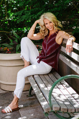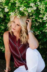 Looking for a top that offers a great summer vibe but is office worthy? The Tie Front Craft Shell is it. This shell is a great boho chic look that can be worn to the office, while also offering those who love a sophisticated summer top with unique details. Let's not forget the details in the back which include a high-low hemline, and a split vent in the back. Wear the Tie Front Craft Shell with black or white trousers for the office and for the weekend, wear with our Piece Crop white denim jeans or white shorts. Cute and function, this top has it all. **FINAL SALE**