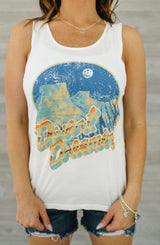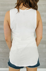 Dreaming of cactus, mountains, and a full moon....Wait, that's just our Desert Dreamin tank! The fun graphic print looks a bit aged, just the way we like. The tank is relaxed fit through the body, with a high-low hemline, scoop neck, and wide tank straps. It is an fun addition to your wardrobe. We love this tank paired with boyfriend jeans or some distressed denim shorts. Perfect for concerts, travel, date night, or that super casual Friday.