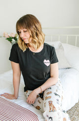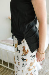 Show your four legged friend that you're a good Dog Mom by wearing this fun ultra comfortable t-shirt. We are most definitely in LOVE with this entire set from PJ Salvage. The t-shirt has a traditional crew neckline, with cap sleeves. The fabric has a slight burnout and the high low hemline with side slits offer a fun detail to a basic t-shirt. Wear this with our Cool Dog lounge pants for around the house or pair this t-shirt with a pair of white denim or boyfriend jeans for a fun, casual look.