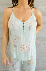 The Paradise Bound Cami is a delicate, spaghetti strap camisole that is lightweight and perfect for those lazy weekends. With its matching Paradise Bound Pant, no need to ponder what to wear, these make it easy. Being lightweight makes them the perfect choice for spring and summer.