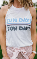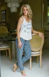 Make your statement with these fun Peachy Party graphic racer-back tanks! Nice and lightweight for wearing around the house paired with your Peachy Party shorts or to run errands on the warm spring and summer days paired with your favorite joggers or ripped jeans. Available in three different options: