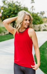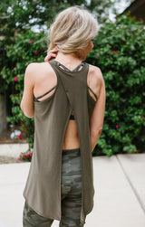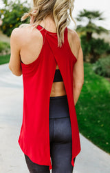 Wear this Tie Back Tank in two ways! You can leave the slit open and loose in the back, or tie them together for a tighter look. Made from a quick-drying lightweight spandex/jersey blend, you can wear it in the hot room over one of our Bra Tops, as a cover-up piece after class, or even just as a casual top and has proven to be a best seller from season from to season!