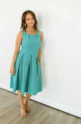 Dance the night away in this gorgeous Anita fit-and-flare style dress. Not only is this dress made of a luxurious jacquard fabric, but it's actually comfortable too. With a flattering pleated neckline and flare skirt, you will look flirty and fun at your special event or even on date night.This gorgeously textured fabric makes this dress sing and lets not forget to mention that it has a fabulous stretch and....pockets! Added bonus, it’s wrinkle-free and machine-washable, too. **FINAL SALE**