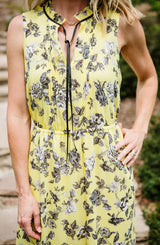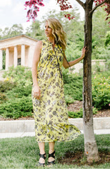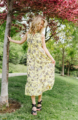 You had us at canary! The bright yellow mixed with the gorgeous floral print will make you smile once you slip it on. The details are subtle, yet so fabulous. This dress features a small ruffle with ribbon tie at the neckline, subtle pleat details on the bodice, elastic waistband, and flowy ruffle skirt. The dress is midi length and is great for any summer event. The Canary Sunset dress is fully lined, giving you peace of mind. Pair with simple heels and a clutch for your next event. **FINAL SALE**