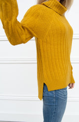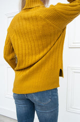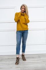 We love a good cable knit and the Dijon Cable Knit Sweater does not disappoint. The details are endless with this sweater. Let's begin by the relaxed turtleneck, which allows for a more slouchy look. The variegated knit pattern is what makes this a fun sweater. The bodice, shoulder, and sleeves all have varying patterns which make this sweater quite interesting. We love the high-low step hemline, making the back a little longer to slightly cover your derriere. For the office, we love this sweater paired with our Grease Leggings and tall boots. For a weekend, casual look, pair with our Mia Skinny jeans and boots.