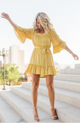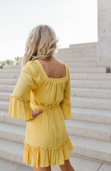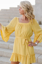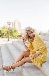 This Gauze & Effect midi dress in lemon drop yellow is perfect for those late summer/early fall days. 3/4 empire sleeves to keep your arms covered, but with a wide square neck and midi length to hang on to those summer temps. Great for work or play, add your favorite heels, sandals, or sneakers to dial it in for the occasion. **FINAL SALE**