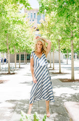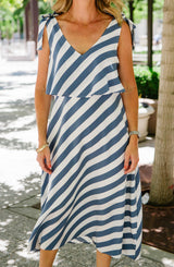 Simple, chic, and effortless, the Lisette Sleeveless Striped Dress by Bobeau is perfect for any occasion. We love the faux tie shoulder straps coupled with the overlay on the front and back bodice. The striped pattern, relaxed fit bodice and skirt, and midi length make this an easy breezy dress for the office, a wedding, or your next garden party. **FINAL SALE**