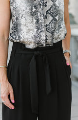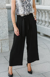 Looking to slim your waistline without the diet? Our Paperbag Crop Pants will do the trick. The high waistline, tie belt detail and relaxed wide leg fit, give you a slimming waistline with a chic sophisticated look. We love these pants paired with a fun graphic tee, heels, and a blazer for the office or for a more conservative office look, pair with a white crisp blouse, statement necklace and heels. For the weekend, pair with white leather sneakers, tank top, and a denim jacket.