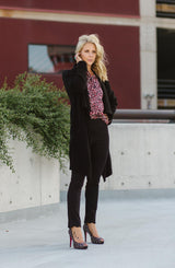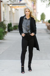 We love a good, long, cardigan and this one checks all the boxes. The drape front adds a chic look to any ensemble. The soft, supple knit will be something that you will wear on repeat all season long. Wear with a dress or trousers for the office, and then transition to the weekend with denim, distressed shorts, or a leggings for the weekend.