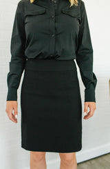 **FINAL SALE** The Perfect Skirt is a wardrobe necessity. This pull-on style features a full lining crafted from Lysse's signature shaping fabric that is slimming throughout the silhouette. Tailored seams and a center back vent are thoughtful finishing details for a contoured fit that make it easy to shift from a work conference to pre-dinner cocktails and will quickly become a wardrobe staple.