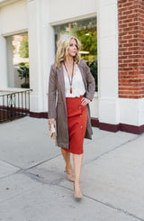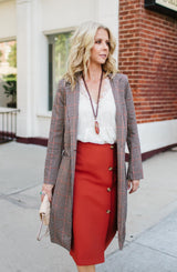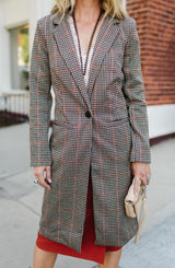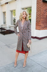 Your favorite boyfriend blazer elevated, the Plaid Boyfriend Trench is the absolute perfect layering piece. Jacket or blazer or both? This lightweight knit jacket is perfect to wear all-day with your favorite trousers, pencil skirt, or office chic dress. For the weekend, we love this jacket paired with distressed denim, sneakers, and a t-shirt. The Plaid Boyfriend Trench is the epitome of polished versatility and one of the most on trend pieces you will own.
