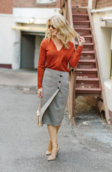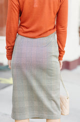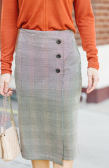 Plaid, check! Chic pencil skirt, check! Your new office staple, double check! You will love everything about this Reality Check Pencil Skirt by Sanctuary. An office chic look that is classic and can be worn for years to come. Aside from the plaid pattern that contains so many great colors, the fit is comfortable and stretchy. The Reality Check Pencil Skirt has an elastic waistband, making it easy to slip on and run out the door. The faux wrap design gives the appearance of a wrap but with full coverage. The buttons are the real show stopper! We love the design and the placement as it not only provides great detail but creates a slimming look as well. Pair this with the OC Chic Bodysuit Blouse or the Elina Long Sleeve or the Essential Turtleneck for the office. For the weekend, pair with our v-neck tee and white leather sneakers and a denim jacket. Versatility is key!