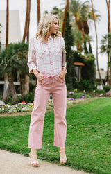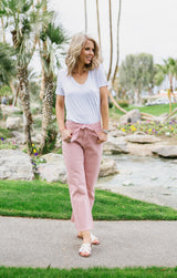 Step into spring with these fabulous crop jeans. The bowie tie front is a wear-every-day cropped jeans with a high-rise fit, with 5 pocket styling, tie front detail and raw hem. Go ahead and tuck in your shirt—you've got nothing to hide in these jeans. Pair with a button-up shirt tucked in with wedges or pair with our favorite Another Love pocket t-shirt and flats. **FINAL SALE**